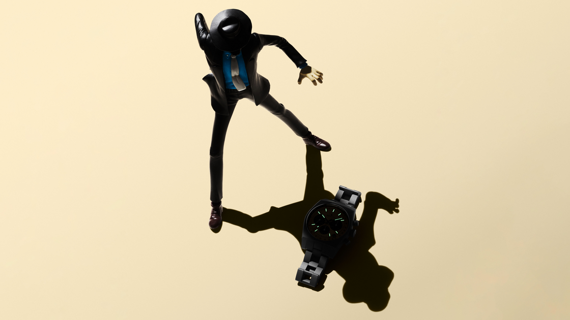 「クロノマスター リバイバル 次元大介エディション」は、次元大介が劇中で着用した時計を忠実に再現した、世界限定200本の希少モデル。アニメに忠実なマイクロブラスト仕上げのマットブラックチタンケースとベージュ文字盤が特徴です。ゼニスが誇るキャリバー エル・プリメロ400を搭載し、裏蓋には次元大介のシルエットが刻印。ゲイ・フレアー社製チタンラダーブレスレットも現代的に甦り、完成度の高いコラボレーションモデルに仕上げられました。