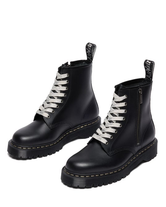 ラウンドレースとメタリックシルバー&グレーのフラットレースの 2 種類を付属し、シーンに合わせた表情を楽しめます。普遍的なアイコンに新たな色を差し込むことで、ドクターマーチンの伝統に新たな息吹をもたらすモデルです。