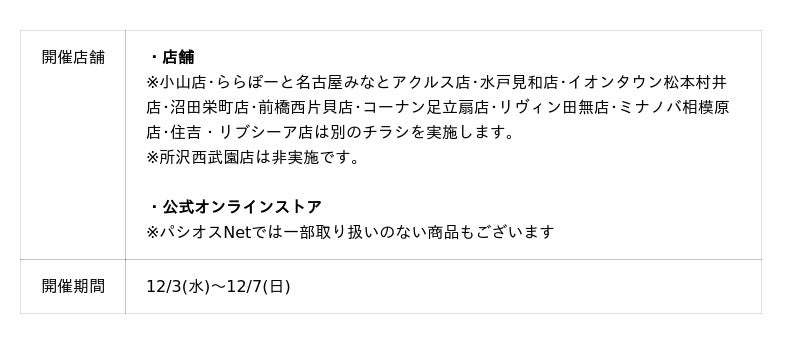 - 【冬のパシオス the SALE】