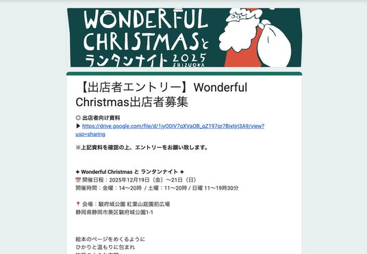 静岡の冬を彩る大型クリスマスマーケット「Wonderful Christmas と ランタンナイト SHIZUOKA 2025」を初開催いたします。
