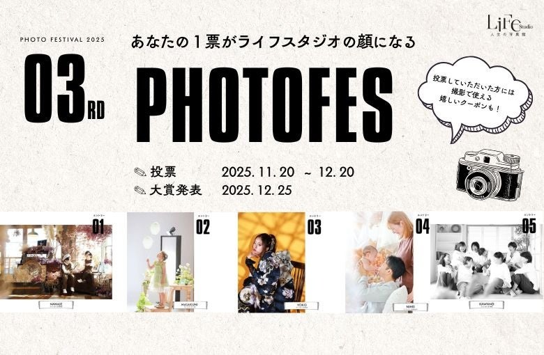 ライフスタジオ写真の祭典PHOTOFES開催中!どなたでもご参加可能です。ライフスタジオオフィシャルLINE登録と投票でクーポンゲットも!