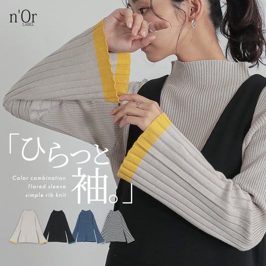 n'OrLABEL配色セミフレアスリーブニット