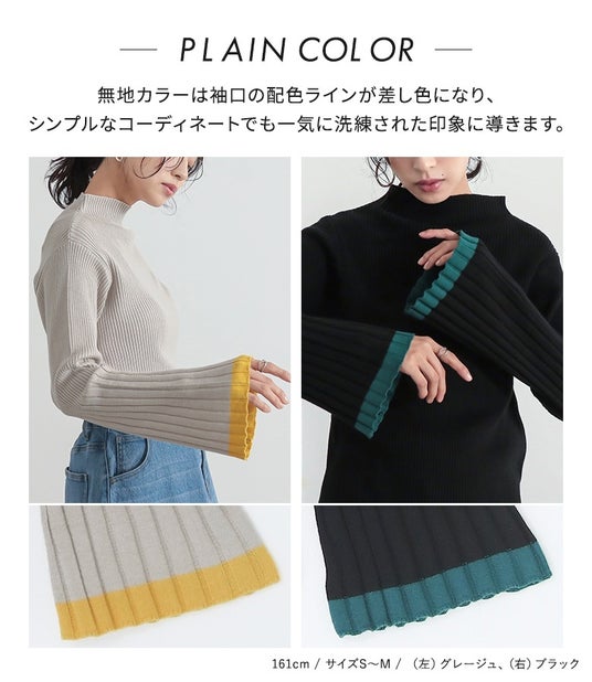 目を惹く配色カラーで気分がアガる、フレアスリーブニット