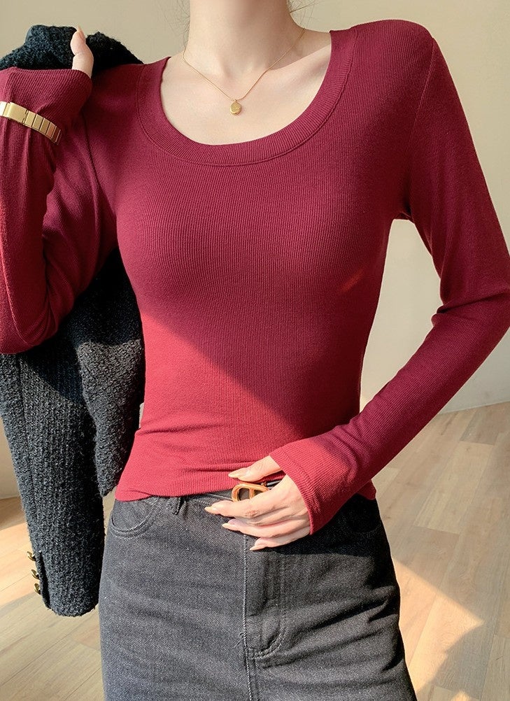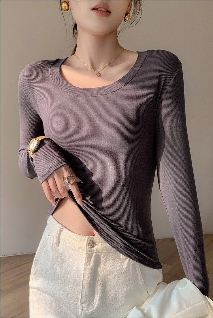 肌あたり柔らかなコットンで作った無地の長袖Tシャツ