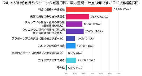 4.ヒゲ脱毛を行うクリニックを選ぶ際に最も重視した点は何ですか?(複数回答可:注3)