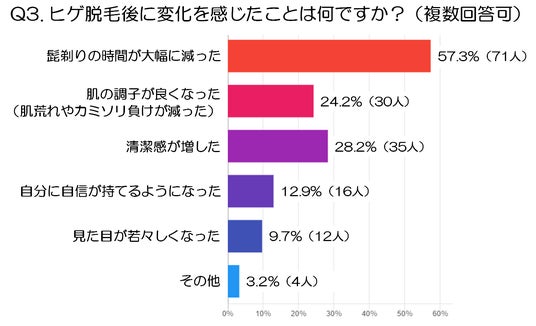 3.ヒゲ脱毛後に変化を感じたことは何ですか?※Q2で「まったく効果を実感できなかった」以外を回答した人が対象(複数回答可:注2)