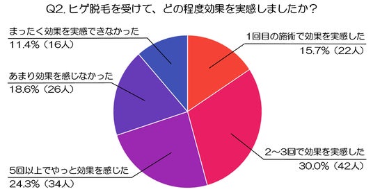 2.ヒゲ脱毛を受けて、どの程度効果を実感しましたか?