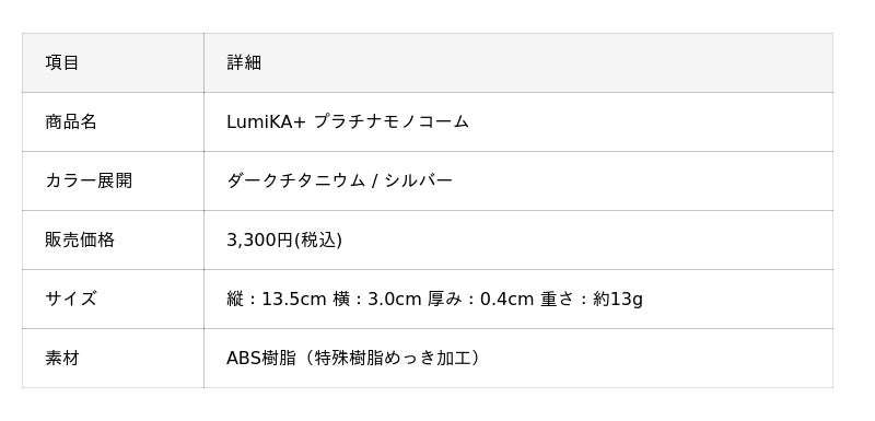 柿原工業株式会社(本社:広島県福山市箕沖町99-13、代表取締役:柿原邦博)によるBtoC向けライフスタイルブランド「LumiKA+(ルミカプラス)」は、冬のメンズスタイリングの悩みを解決する新商品「プラチナモノコーム(2色展開)」を販売開始しました。