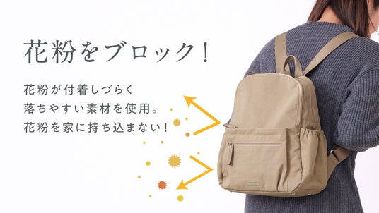 花粉症対策として、マスクや眼鏡など「身につけるもの」は普及していますが、実際には持ち物にも大量の花粉が付着します。特にリュックサックは背面が大きく露出することから、花粉の付着が多いアイテムでありながら、これまで対策が見過ごされてきました。