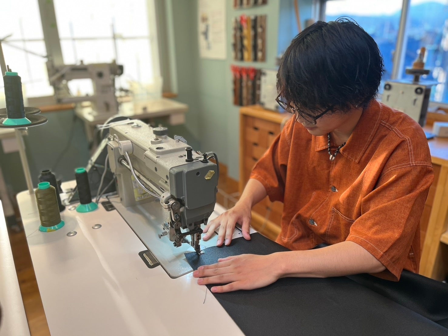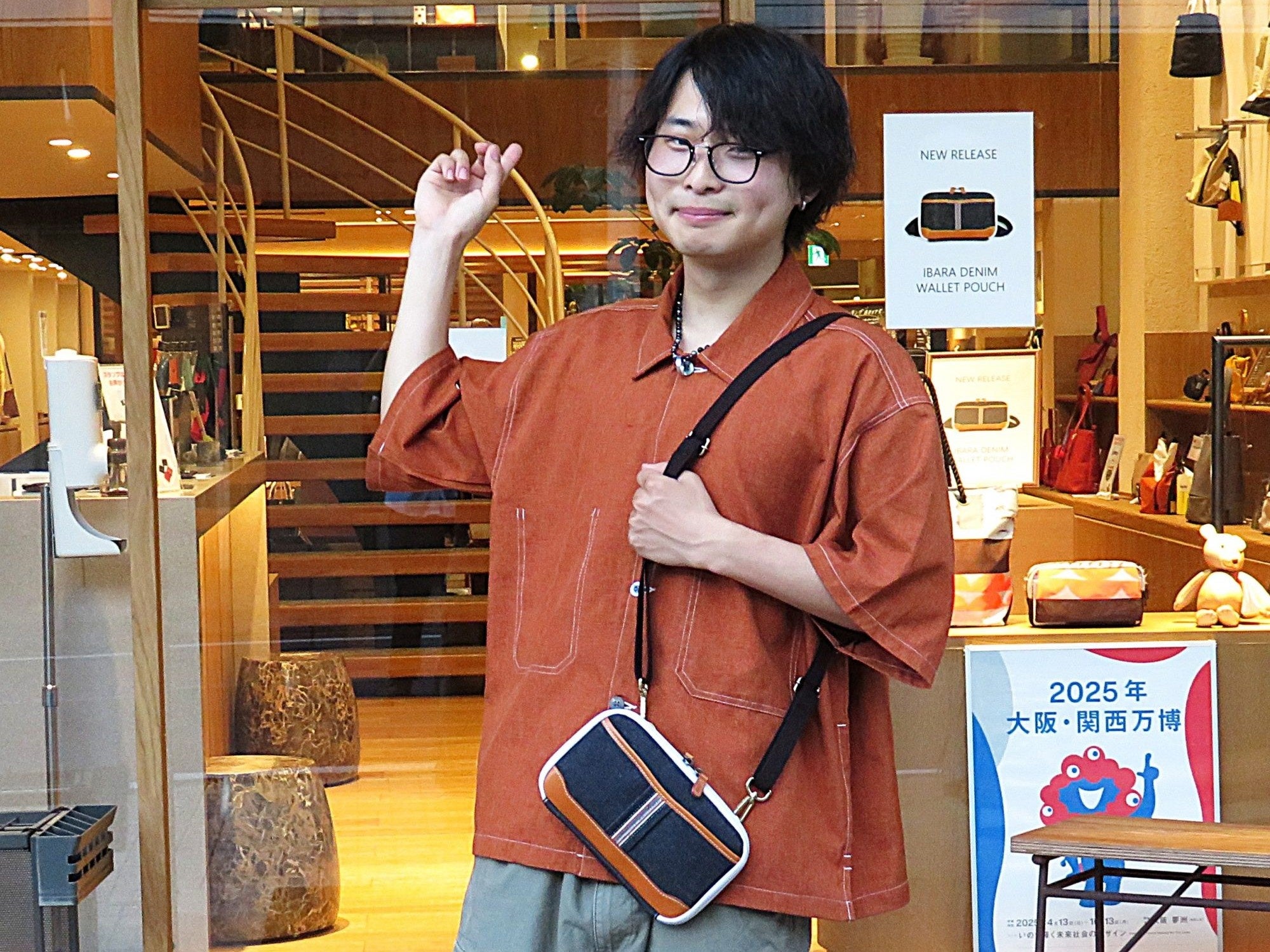 「井原デニム ウォレットポーチ」をデザインしたのは、山岸紀善さんです。プロダクトデザインの専門学校を卒業してからレザーを学び、2024年春、Artisan School の11期生として21歳で入学しました。(2025年3月卒業 現在は鞄メーカーに就職)