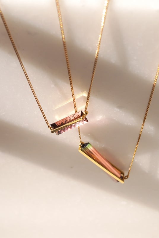 天然石を扱うようになり、専門的な知識が深まるとともに、選ぶ視点も洗練されていきました。現在では誕生石をはじめ、バイカラートルマリン、パライバトルマリン、インクルージョン入りの希少な石など、多彩なラインナップを展開。その中でも特に美しく、個性が際立つもの、心惹かれる石を厳選し、丁寧に加工しています。