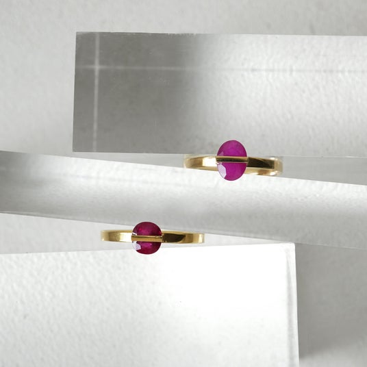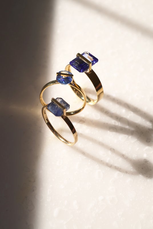デザイナーが学生時代に学んだ木工技術を応用し、天然石に直接溝を掘り、そこに金属を嵌め込む独自の留め方を考案。この革新的な手法を実現するため、職人・詫間さんと試行錯誤を重ね、緻密な技術によってjanukaならではのジュエリーデザインが誕生しました。