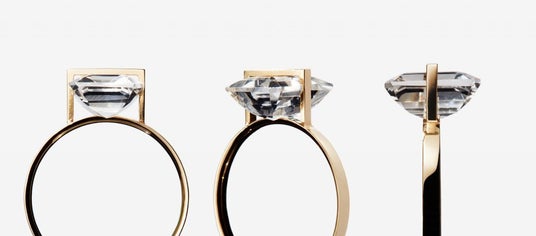 従来は高さのある石の底辺をカットして収まりをよくしていましたが、輝きが損なわれるケースがあったため、この加工を廃止。代わりに、石のカットや形状に応じた複数の収め方を考案しました。例えば、ダイヤモンドのように先端が尖ったカットにはアームに穴を開け、キューレットが収まる仕様に。底面がフラットな石にはアーム部分に溝を設け、V字カットの石にはアームに切れ込みを入れるなど、それぞれに最適な方法を取り入れています。