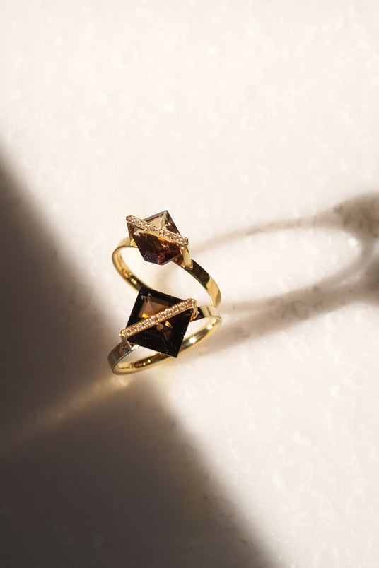 石の種類最初のリリース時は、石の種類も少なく、クォーツ、スモーキークォーツ、アクアマリンの3種類。全てオクタングルカットを使っています。