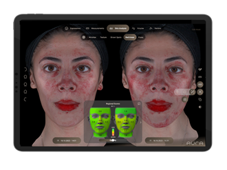 AURAは13台の高解像度カメラと独自AIアルゴリズムにより、たった1ショットで 顔から首までを0.1mm単位で精密に3D再現。しわ・毛穴・赤み・色素沈着などの肌 状態はもちろん、顔の比率や輪郭、表情の変化まで立体的に可視化します。 施術前後の“1:1の立体比較”が可能となり、肉眼では捉えにくい変化も明確に視覚化。 患者様は「何がどう変わったのか」を直感的に理解できるため、施術への納得感や 満足度が大きく高まります。