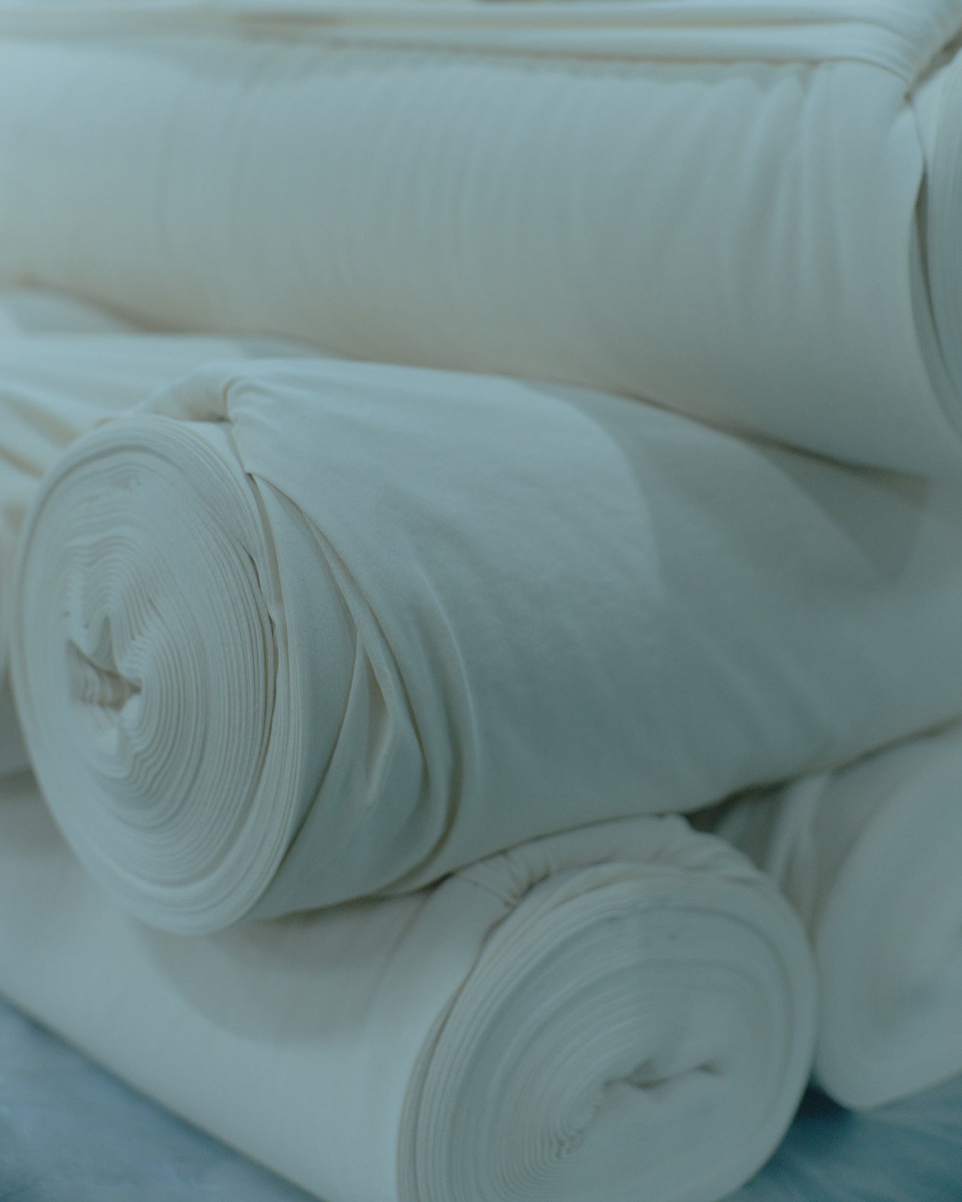 MALUの服づくりは、常に“素材”から始まります。長年にわたりエイガールズが培ってきたジャージー開発の技術をもとに、MALU専用に開発されたオリジナルテキスタイルはすべて日本製。選び抜かれた天然繊維を用い、究極の肌ざわりと着心地を実現。