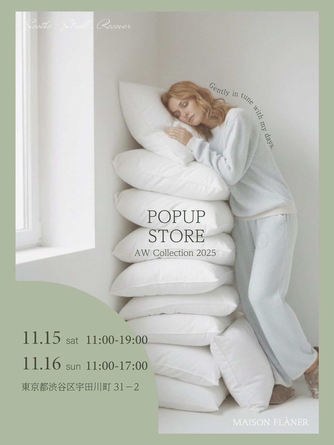 株式会社HAVNA(本社:東京都荒川区、代表取締役:川又龍人)は、レディース向けリカバリールームウェアブランド「MAISON FLÂNER(メゾン フラネ)」のプレローンチ展示イベントを、2025年11月15日(土)より渋谷・宇田川町(SHIBUYA BEAM-B)にて開催いたします。