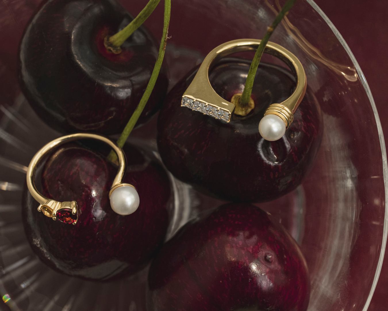 leleのネイルコレクションより着想を得た、ジルコニア、ロードライトガーネットとシャンパンクォーツの艶やかな彩り。