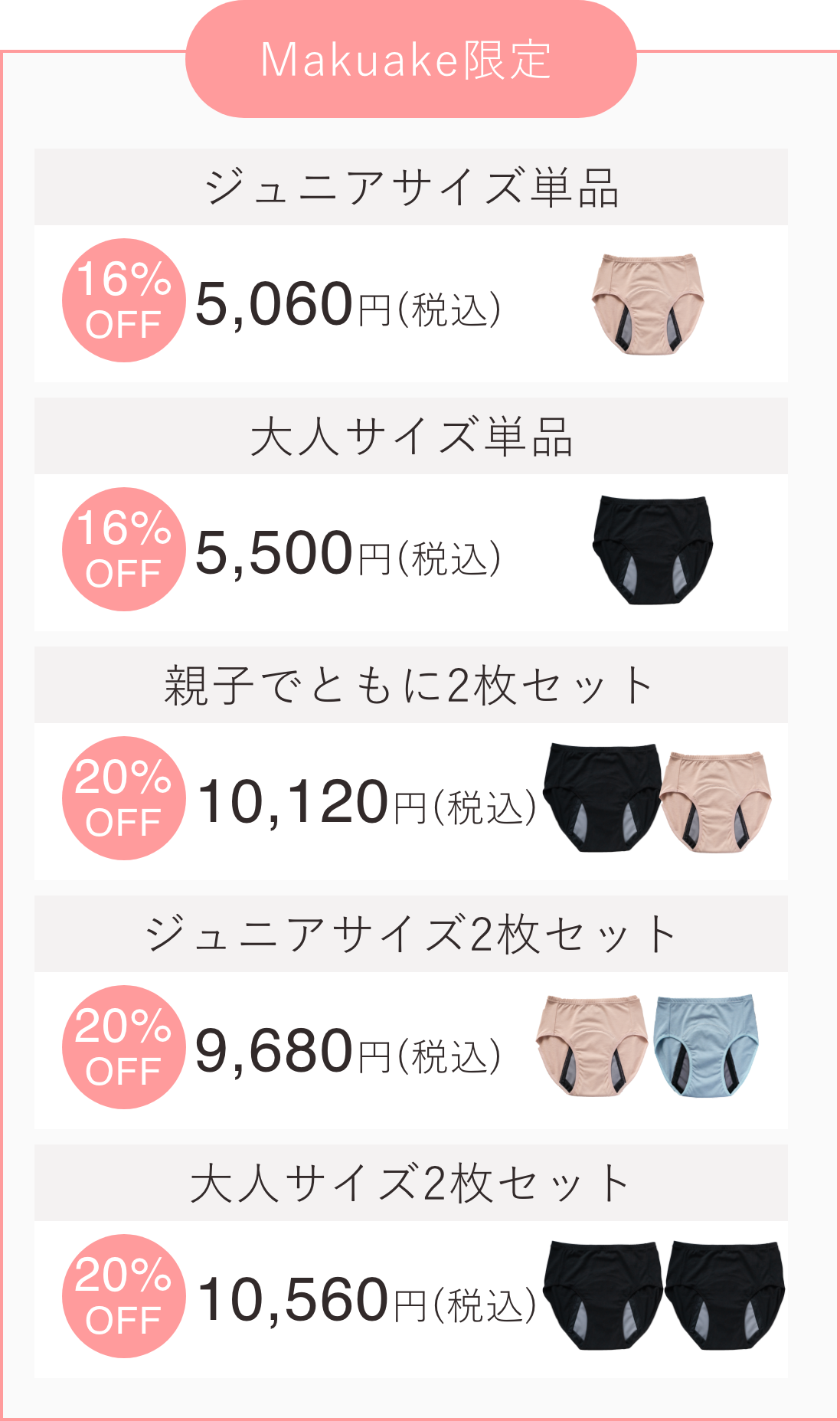 本製品は、娘を持つ母親たちの「突然の生理で子供の心を傷つけたくない」「生理をポジティブに迎えてほしい」という切実な願いを原点として開発されました。小学校高学年から中学生の初潮前の準備から、大人の生理の始まり・終わり、軽い尿漏れ対策まで、世代を超えた「もしも」の不安に寄り添います。体温を熱源として温まる独自開発の「αオーラ(R)繊維」※を身生地に使用し、冷えを感じやすい生理期間中や普段使いを通じて、心と体に心地よいぬくもりを提供します。