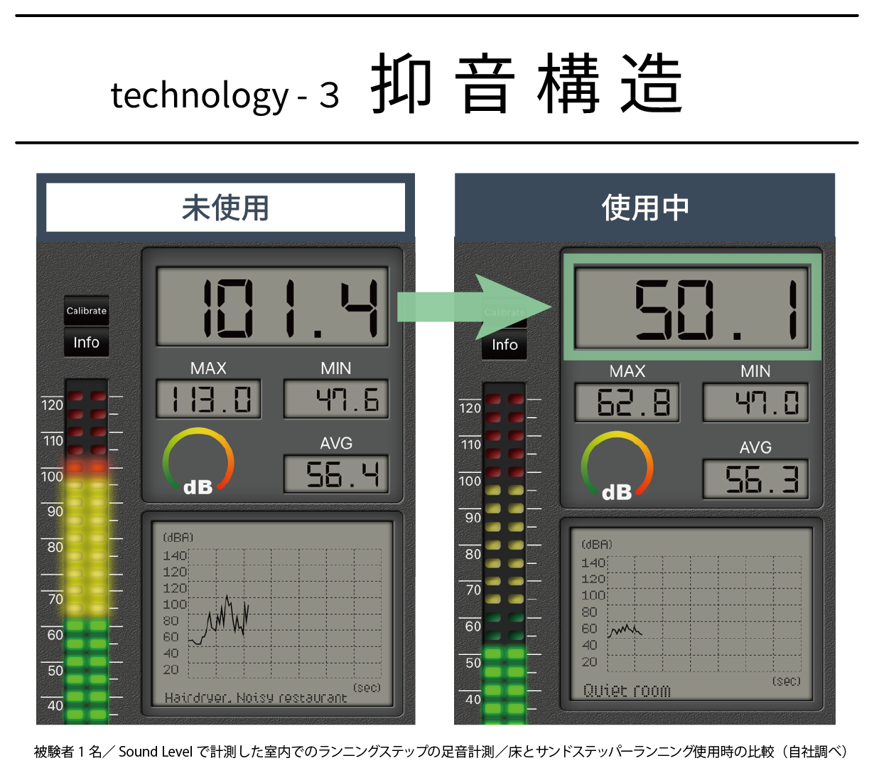 走るような足踏みでも、足音を気にせず、思いっきり運動することが出来ます。