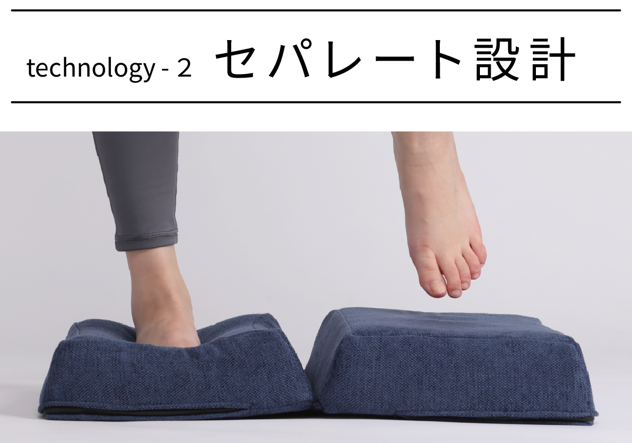 左右を分離させてセパレート設計が足の動きに干渉されることなく、片足での不安定さを再現。