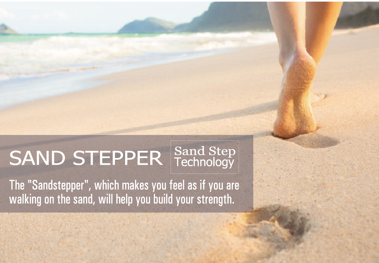 独自のサンドステップテクノロジー(特許出願中)により、自宅で砂浜を体感し、日常空間に自然の負荷と解放感をもたらします。