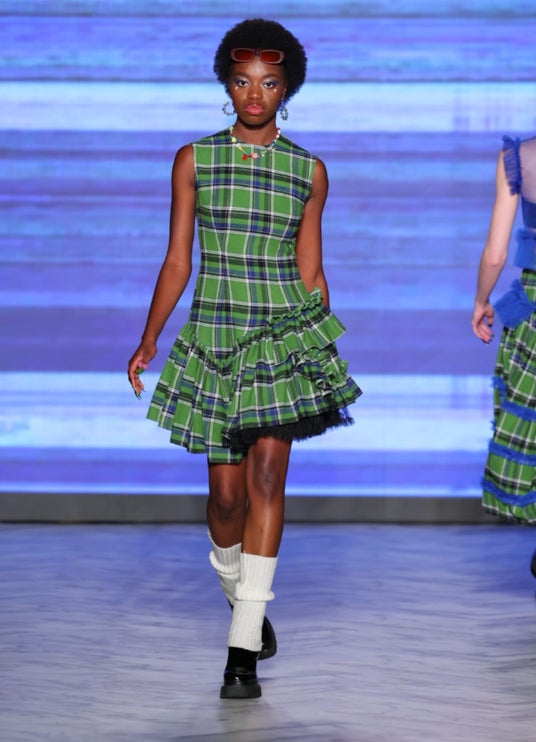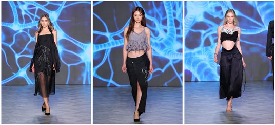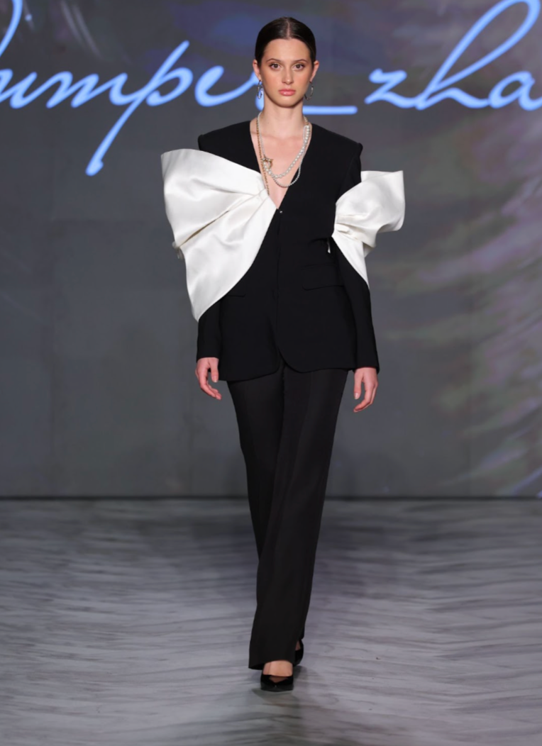 今季のテーマは「Connecting The Dots」。スティーブ・ジョブズの言葉に着想し、“今の選択が未来へつながる”という哲学を表現。異なる質感を組み合わせ、神経構造をモチーフにしたスモッキングやコードワーク、刺繍を取り入れ、断片が新たな意味を持つ再構築のデザインを提案した。