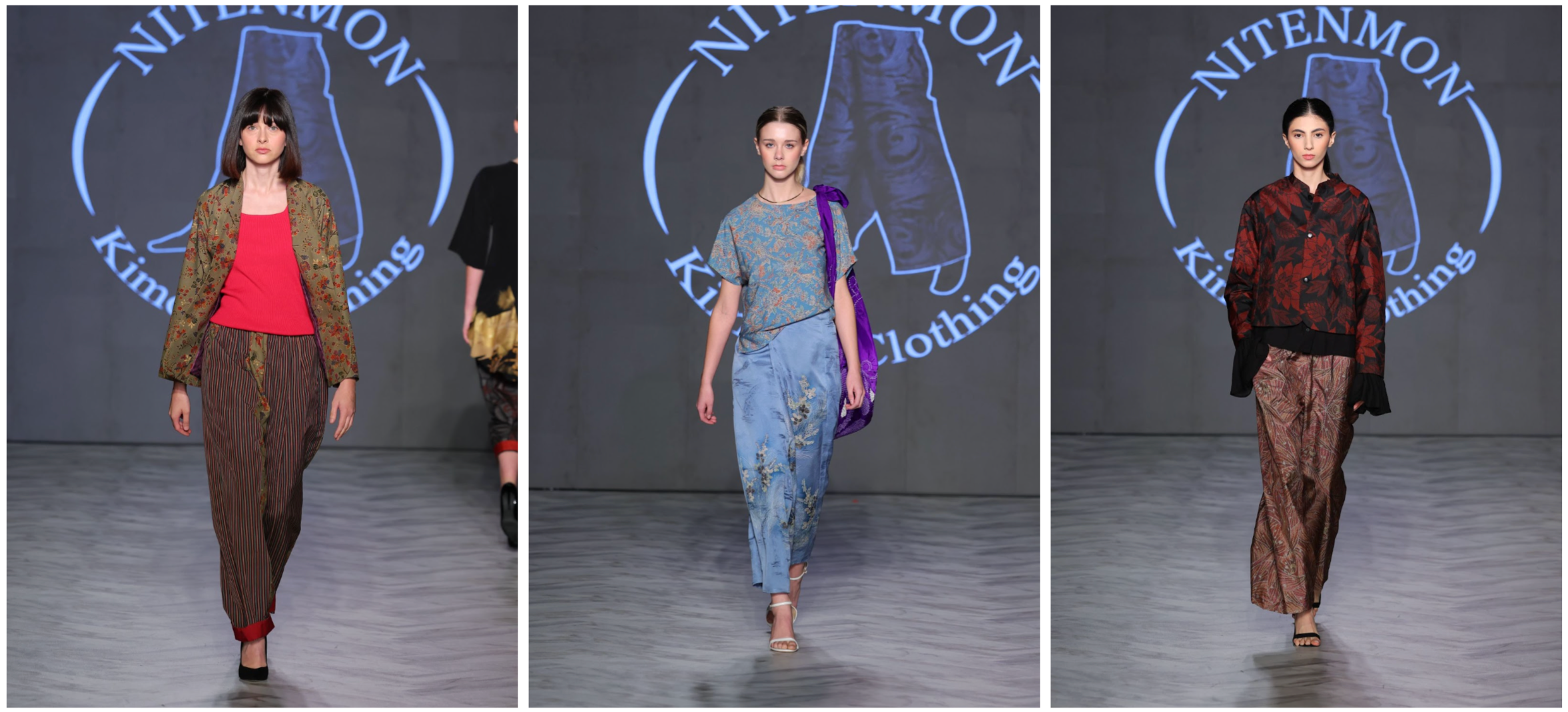 今季は、役目を終えた着物にデニムなど異素材を掛け合わせ、現代的なシルエットへと再構築。伝統の色柄と軽やかな着心地を融合させ、日常で自然に自己表現を楽しめるスタイルを提案した。
