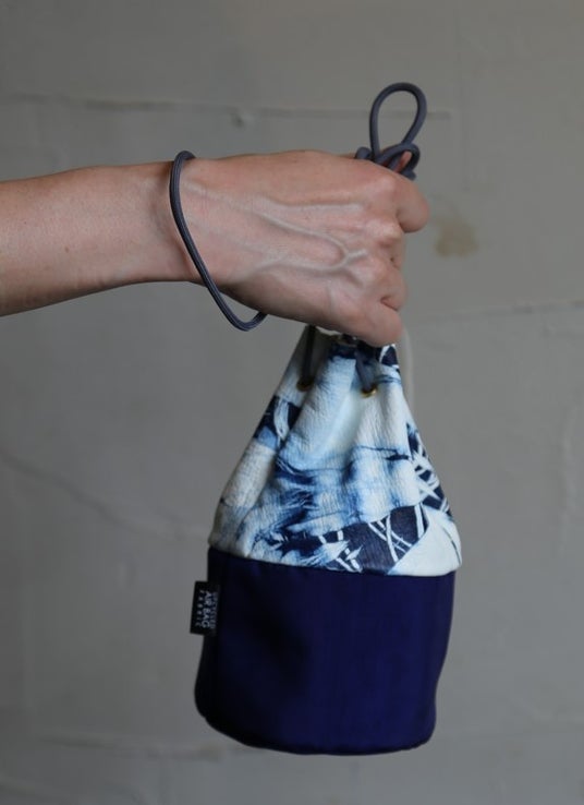 <エシカル巾着>ジビエ鹿レザー×エアバッグ生地
