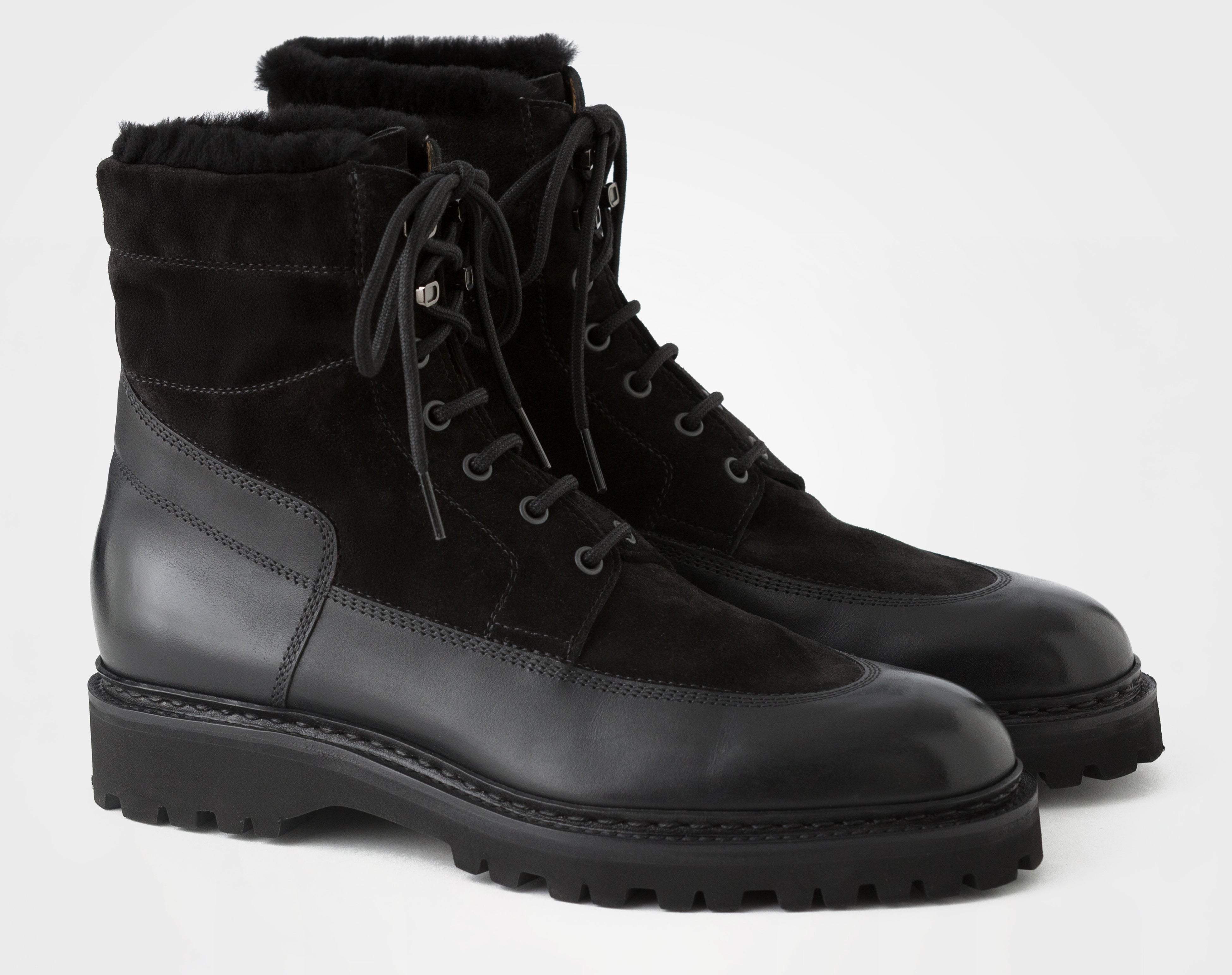 軽さと快適な履き心地で人気のブーツPEAKには、天然ムートンのシアリングを施し、阪急メンズ大阪店限定色として、ブラックカラーをご用意しました。