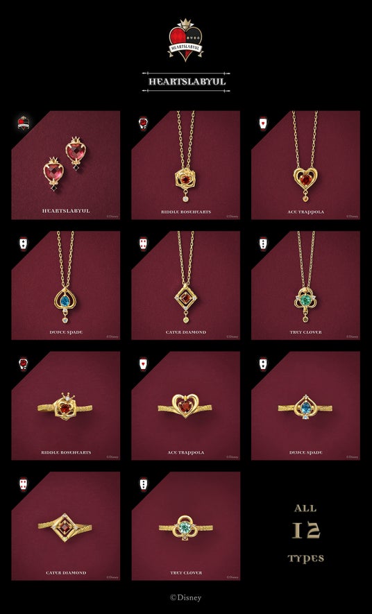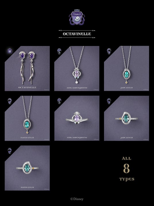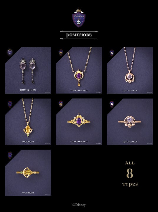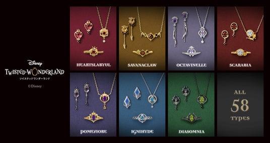 名門魔法士養成学校「ナイトレイブンカレッジ」に通う寮生22人をイメージしたネックレス・リングと、7寮をイメージしたピアス・イヤリングは『ディズニー ツイステッドワンダーランド』の世界観をイメージし、細部までこだわった特別感溢れるジュエリーです。