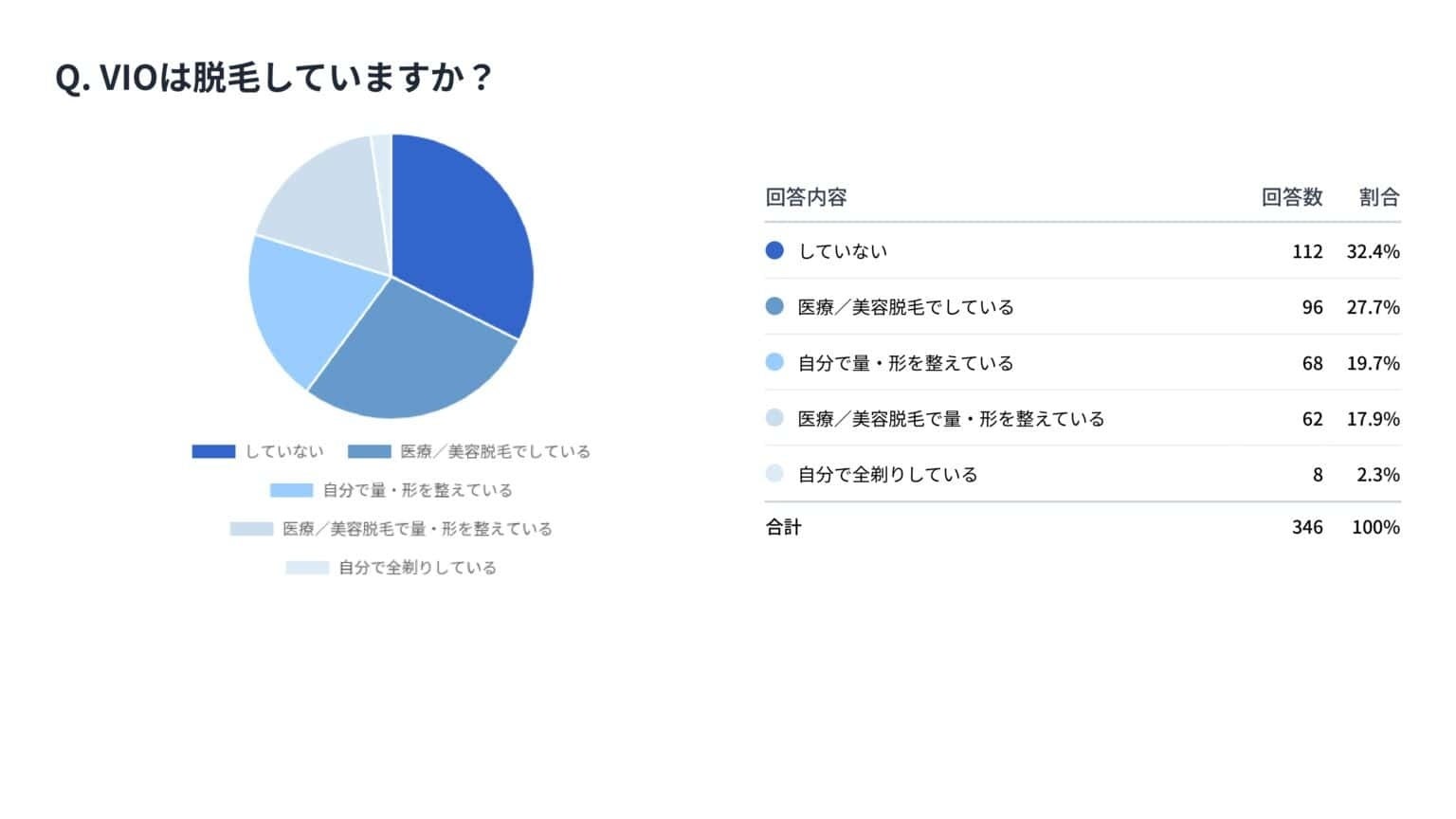 - VIO処理も進んで取り入れる傾向