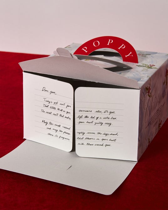 そしてお手紙を開くようなワクワク感を楽しめるデザインのケーキBOX。