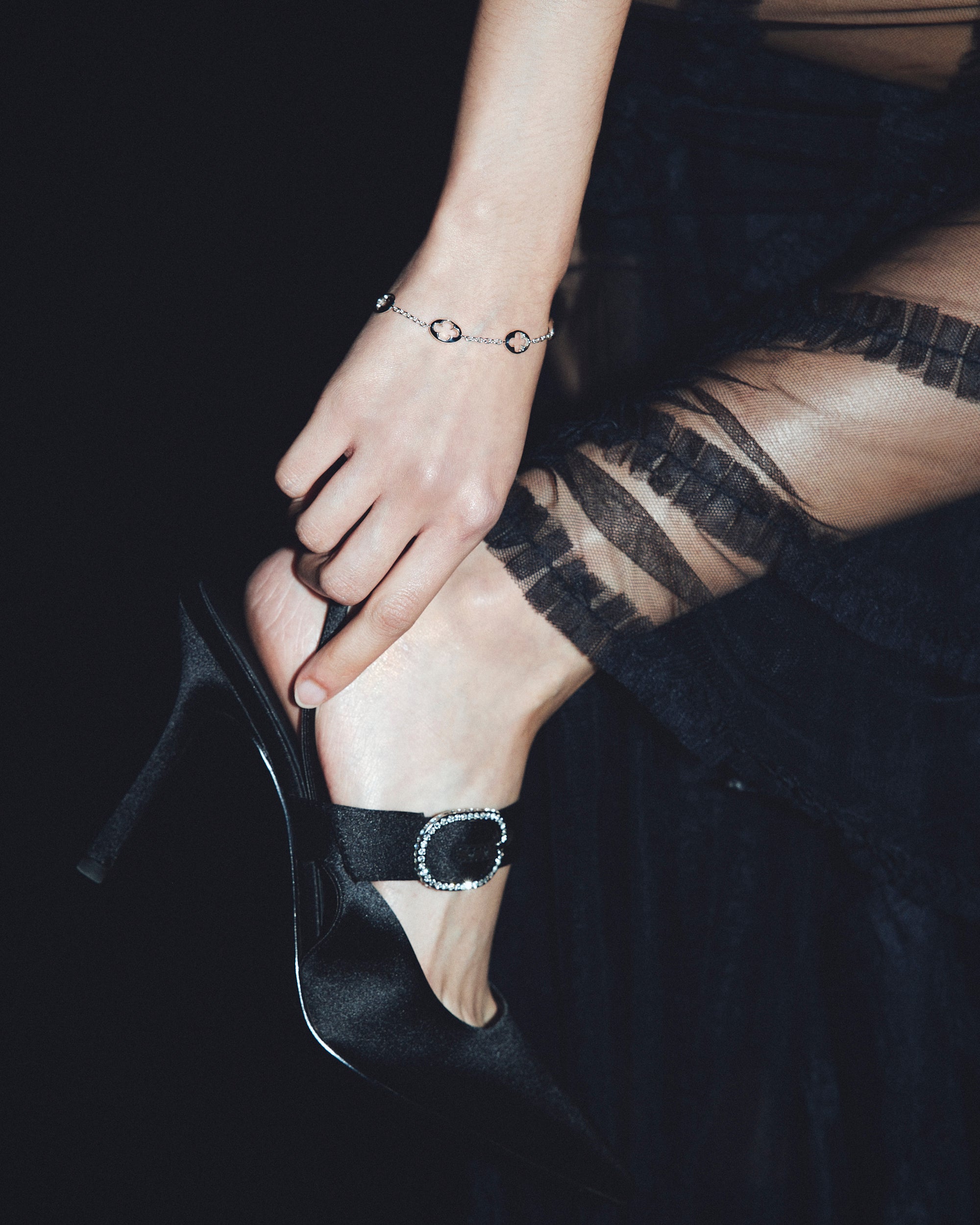 華奢で軽やかなチェーンと繊細な造形が静かな存在感を漂わせます。