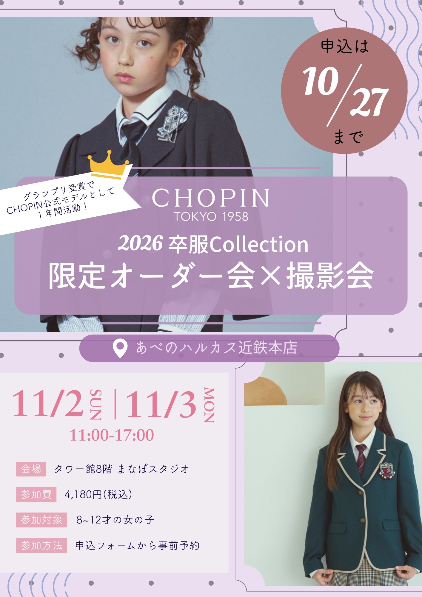 「CHOPIN 2026 卒服Collection 限定オーダー会」イベントスケジュール