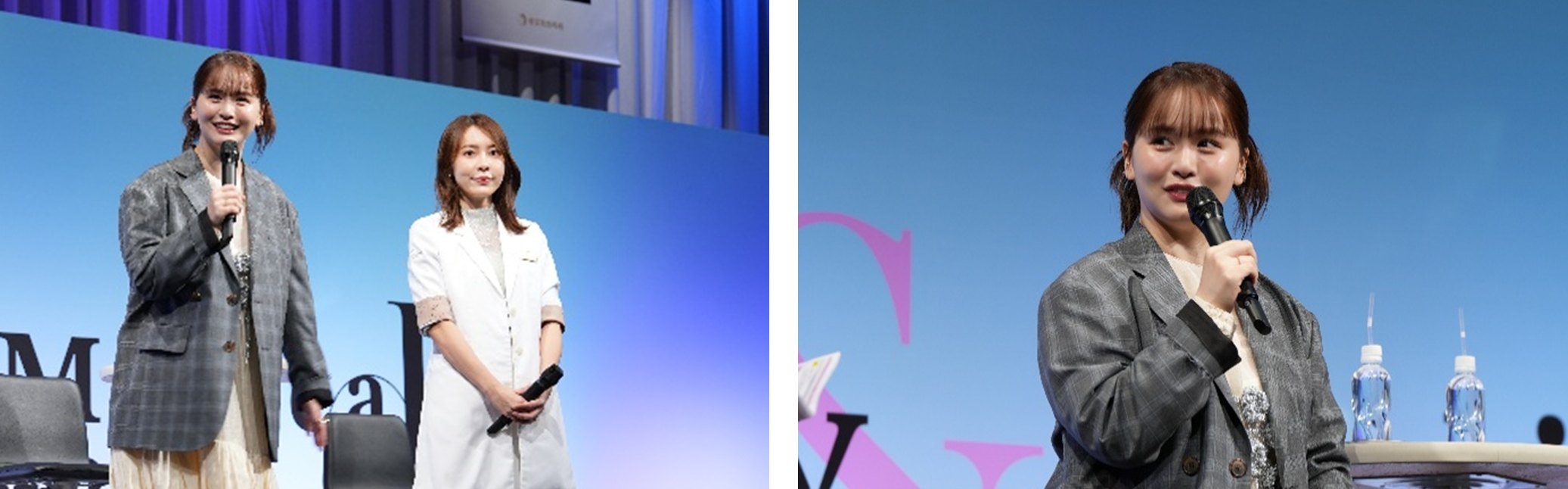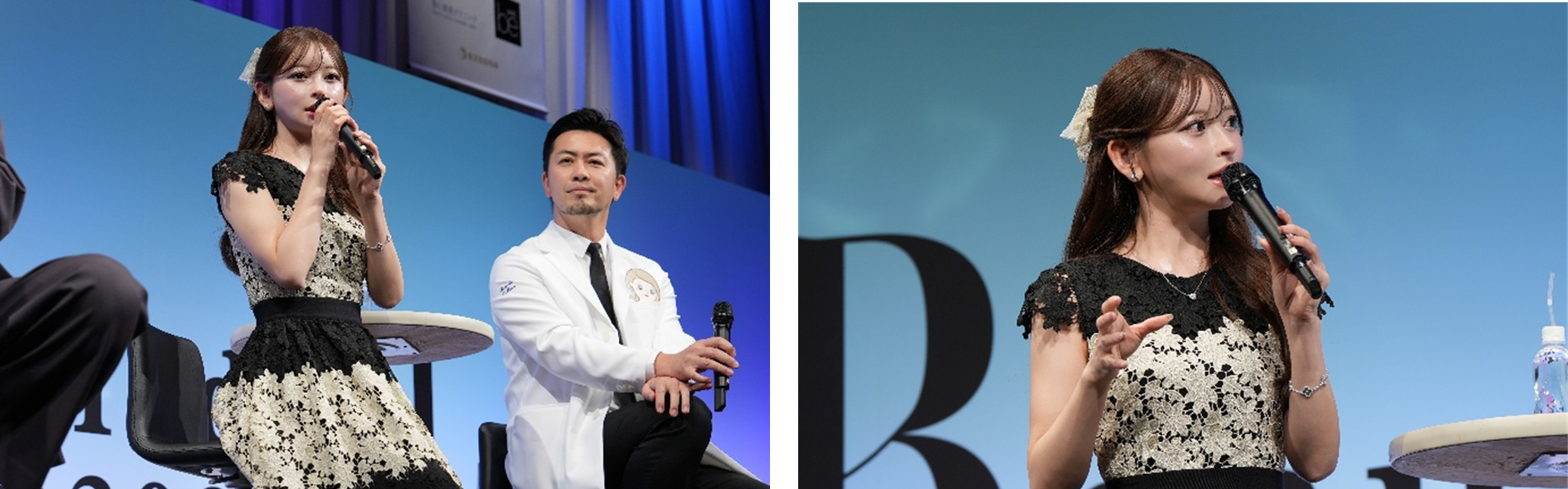 続いて、ゆうこす(菅本裕子)さんとサイトリ杉山美容クリニックの櫻井夏子院長によるトークセッションでは、「美容医療で考える、これからのフェムケア」をテーマに展開しました。バストケアやVIO脱毛、妊娠・出産後のケアなど、なかなか人に聞きづらいテーマについて、ゆうこすさん(菅本裕子)がリアルな体験を交えて率直に質問し、櫻井医師が専門的かつやさしく解説しました。会場全体が共感と安心の空気に包まれました。