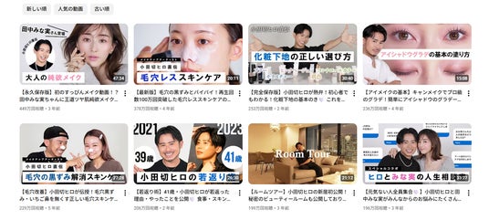 実際、小田切ヒロさんのYouTubeメインチャンネルで動画の再生数順に並べ替えてみると、メイクやスキンケアの話題とならんで、本人にかんする内容(若返った理由、ルームツアー)や人生相談(田中みな実さんとのトーク)のテーマが上位に入っています。