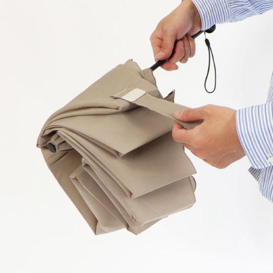 - 3秒で綺麗に折りたためる独自の形状安定加工特殊な熱加工により生地に直接折り目を付け、形状を固定。その効果は落ちる事はなく、半永久的に形状を保つ事が出来ます。