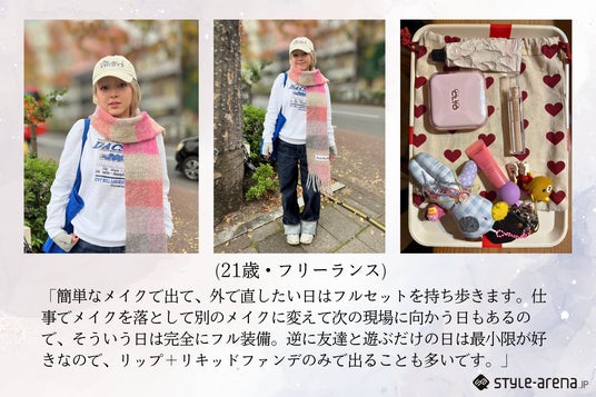 また、25歳・美容師の人は、ポーチの構成は毎日同じで、変わるのはリップの色味だけ。全アイテムを毎日使うわけではないが、「この一式が入っているだけで安心」と語り、“私にはこれ”というマイルールがあることが伺えました。