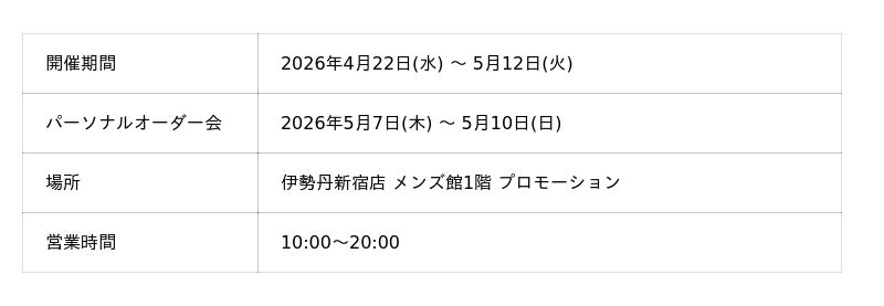 ※ オーダー品は伊勢丹新宿店 メンズ館地下1階/エルベシャプリエにてお渡しいたします。
