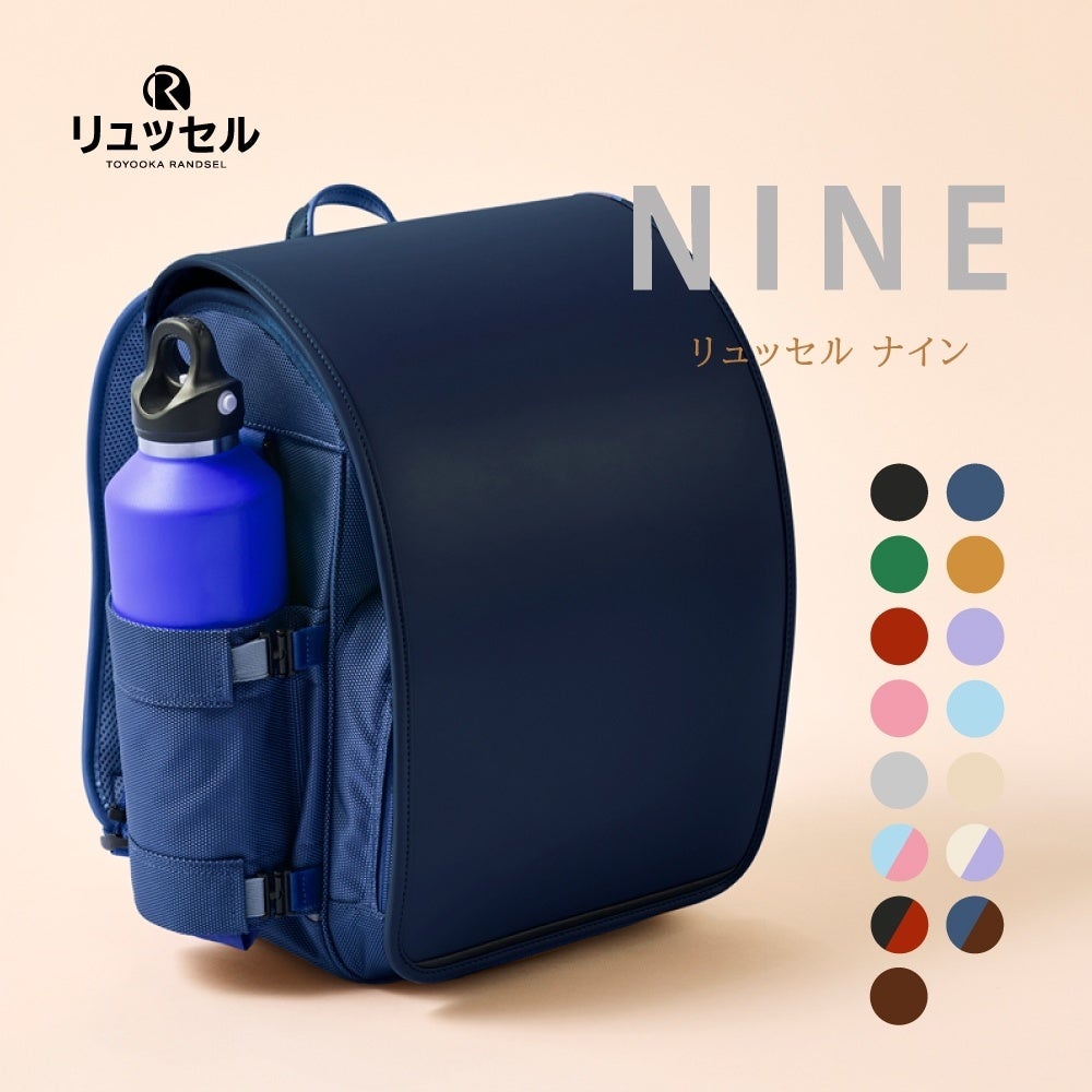 リュッセル(R)︎シリーズの人気モデルとなるNINEは、片側のサイドポケットに伸びるポケットを採用し、1L サイズの水筒も楽々収納可能。開閉には FIDLOCK 社のマグネットロックを採用。前段ガバっとポケットで使いやすさと収納力を両立。サイドと肩ベルトには通常のランドセル同様ナスカン、Dカンを採用。 360 度リフレクター付きで夜も安心です。
