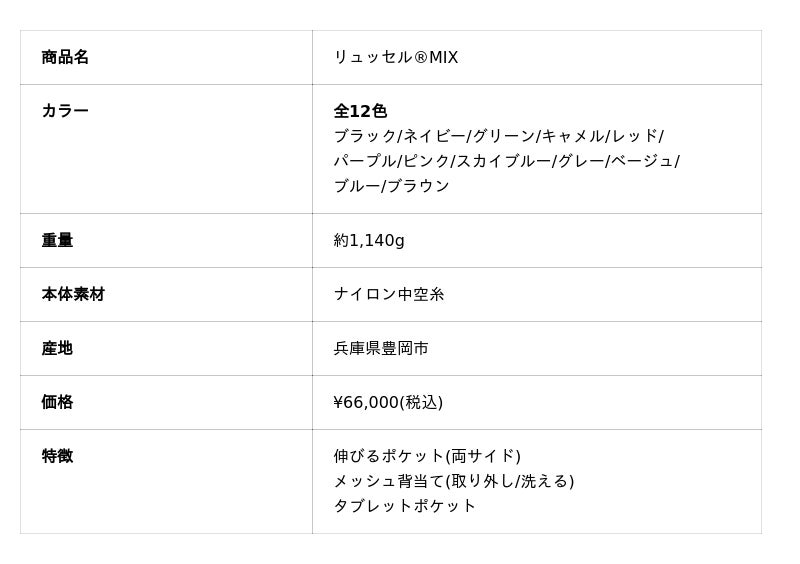 機能性と快適性をミックス【リュッセル(R)︎MIX】