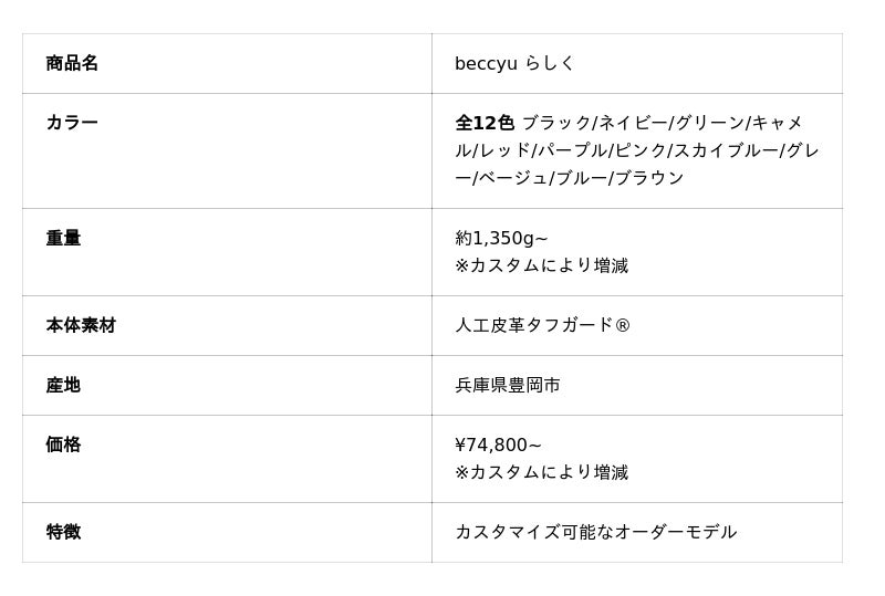 【beccyu らしく】は、豊富なパーツを自由に組み合わせて、世界にたった一つ、自分だけのランドセルが作れるフルカスタマイズモデル。 本体カラー、ステッチ(糸)カラー、内装カラー、前ひも・ふちの色、カブセ裏デザインなど、細部に至るまで好みに合わせて選べます。