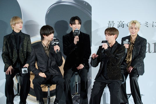 基さんは、「いつもキメ台詞を言うのは、新とか奏なのですが、今回のCMでは、HARIASさんの力もあって、普段キメ台詞をあまり言わない他のメンバーもキメ台詞を言うことができたので、新鮮だと思います!そういうところも含めてぜひ皆さんにも見てほしいです!」と話されました。また、途中で司会者から基さんにキメ台詞を求められる場面も。 「いいじゃん」と一言決めた後、基さんは照れくさそうな表情を浮かべていました。