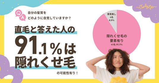 今回の調査では、自分を「直毛」と回答した人のうち、91.1%が“隠れくせ毛”の可能性があることが分かりました。