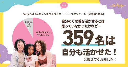 さらに、Instagramストーリーズで行ったアンケートでは、392人中359人が「自分の髪はくせ毛を活かせると思っていなかったけれど、実際に活かせた」と回答しました。これは、くせ毛を隠すのではなく活かすことが、新しいカルチャーとして広がる可能性を示しています。(※Curly Girl RinのInstagramストーリーズアンケート結果)