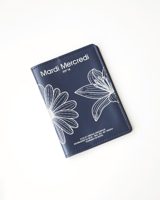 肌触りの良いフェイクレザーに、フラワーマルディのモチーフをあしらったパスポートケース。