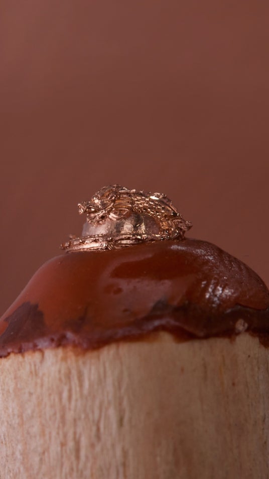 - ローズゴールドのドラゴンが包み込むターコイズブルーの地球が60秒で1回転する構造。