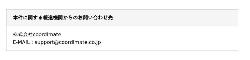 コーポレートサイト:https://coordimate.co.jp/