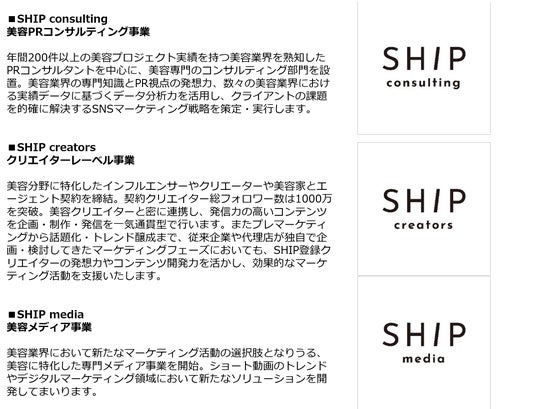 SHIPは、美容業界に特化した以下のサービスを提供するSNSマーケティングレーベルです。